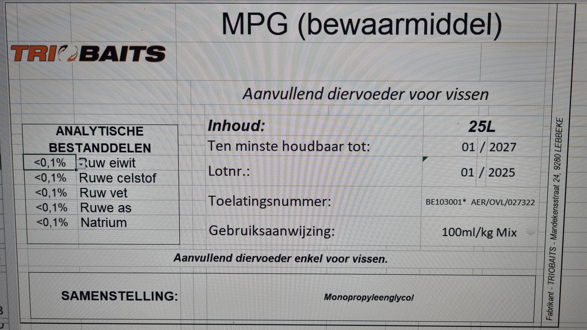 Voeg 100mL/kg mix toe.