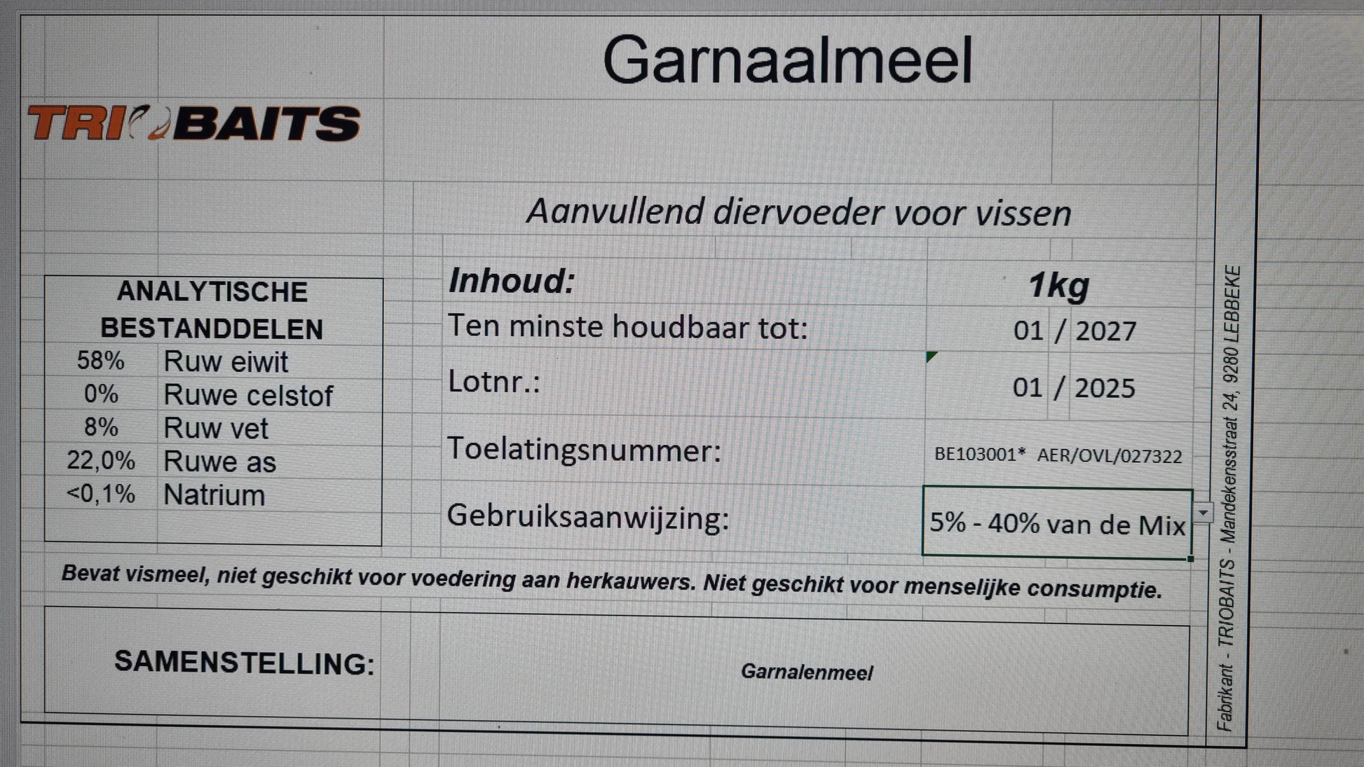 Garnalenmeel is een zeer interessant en vooral functioneel ingrediënt. De geur en smaak van onze garnaalmeel is bij kleine hoeveelheden al duidelijk merkbaar in een boiliemix. Daarnaast heeft ons garnaalmeel een laag soortelijk gewicht waardoor de boilies licht van gewicht worden. Hierdoor is het oppassen met doseren, want anders gaan uw boilies drijven.