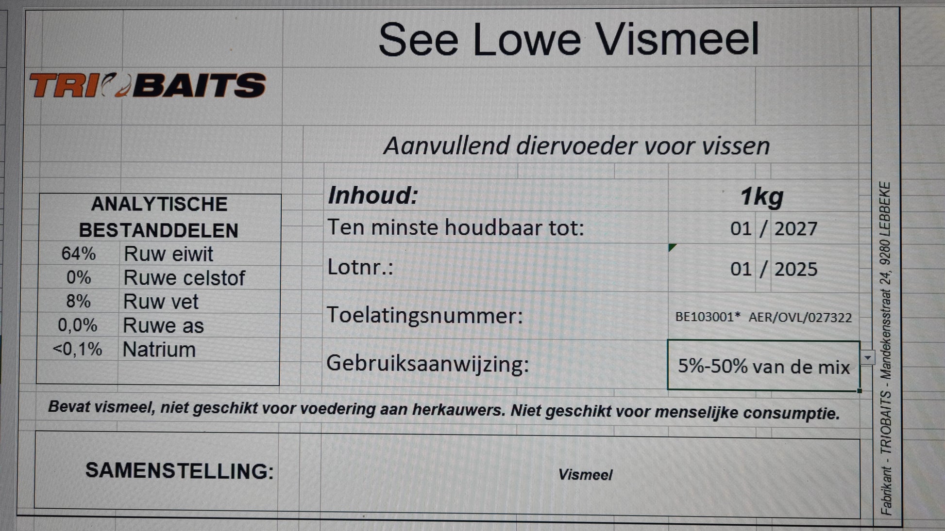 Door de onbeschikbaarheid van LT 999 vismeel in het verleden hadden we reeds gewerkt met andere vismeelsoorten. We merkten eerlijk gezegd geen verschil in de vangsten. Maar natuurlijk wou iedereen LT... .
