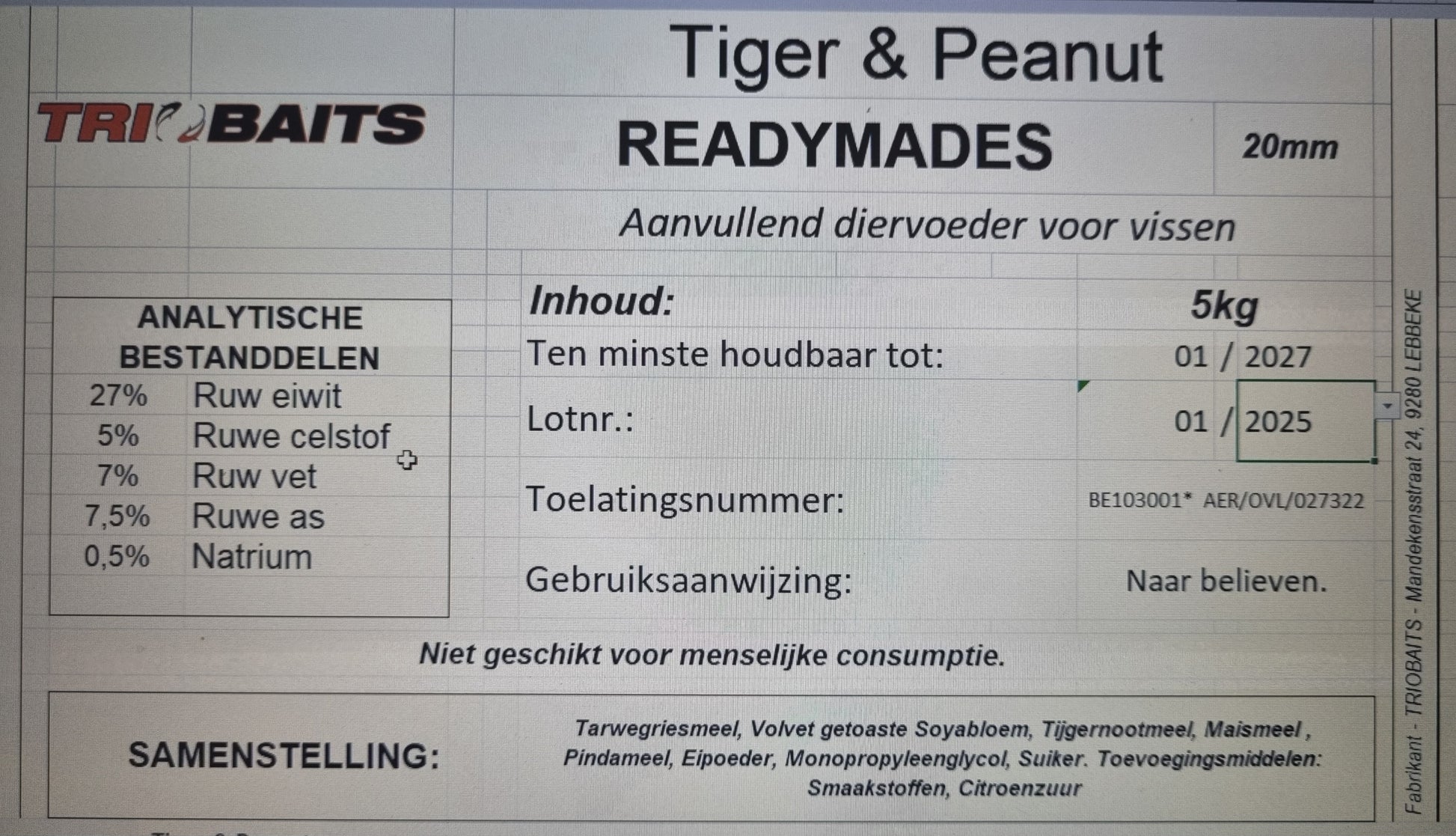 The tigernuts are crushed heavy, by heating these nuts during this process the temperature rises wich creates a very sweet and warm taste. The combination with roasted peanut and sweetner truly makes this boilie taste like a real delight !